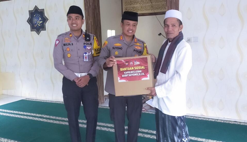 Cakratara.com – Kapolres Lebak Polda Banten AKBP Suyono, SIK menyerahkan  Bantuan Sosial berupa paket sembako ke Pengurus Mushola Al Mar’i Perum Sudirman Hill Di hari Jum’at yang penuh berkah. Rangkasbitung, Kabupaten Lebak. Jum’at (15/3/2024).